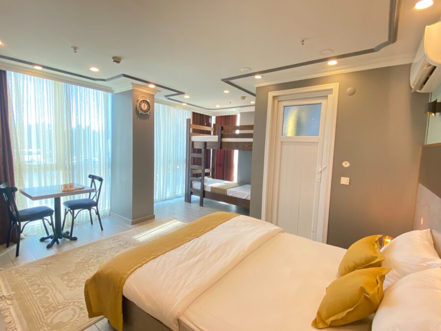 Aile odamız, geniş ve rahat bir konaklama alanı sunar. Aileler için ideal olan bu oda, birden fazla yatak ve geniş oturma alanı ile tasarlanmıştır. Modern olanaklar, temiz banyo ve ekstra depolama alanları ile donatılmıştır. Hem çocuklar hem de yetişkinler için konforlu bir ortam sağlar, ailenizle keyifli bir konaklama deneyimi yaşamanıza yardımcı olur.